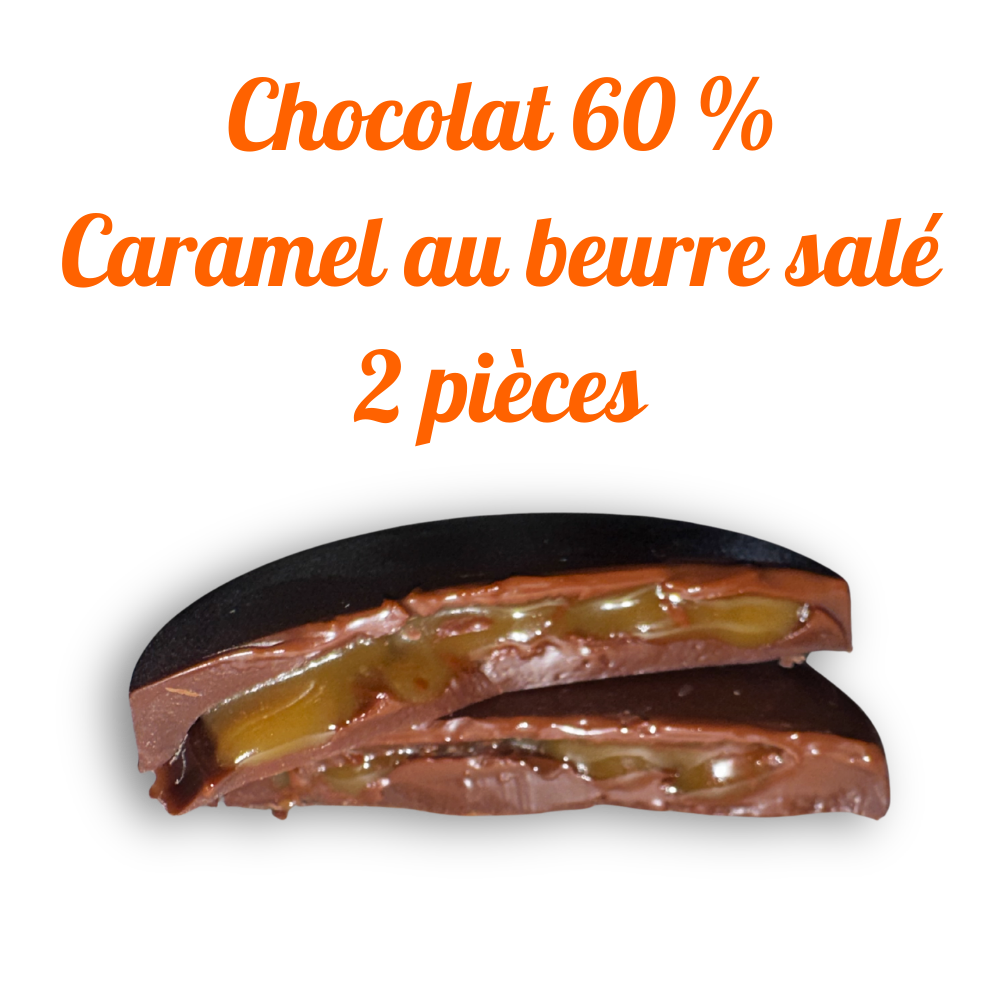 Dark Chocolate 60% – Salted Butter Caramel: Dark chocolate 60% (cocoa mass*, cane sugar*, cocoa butter*, non-GMO sunflower lecithin*, fleur de sel*, vanilla powder*), cream* 35%, sugar*, Swiss semi-salted butter*, fleur de sel*.