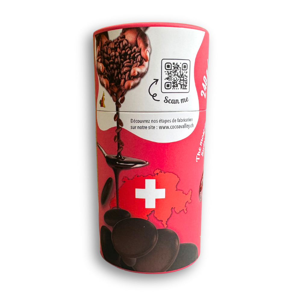 Behind this excellence lie exceptional origins: noble cocoa from our own plantations in Cameroon, transformed with Swiss precision and expertise into a uniquely premium product. An intense sensory journey, from bean to palate.