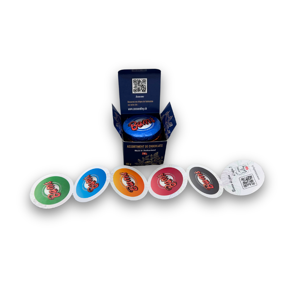 Discover the perfect alliance of intensity and elegance with our Premium box of 5 assorted chocolates. Each 20g piece is a promise of pure pleasure, carefully individually wrapped to preserve its freshness and satisfying crunch, while guaranteeing a perfectly hygienic tasting experience, perfect for sharing.