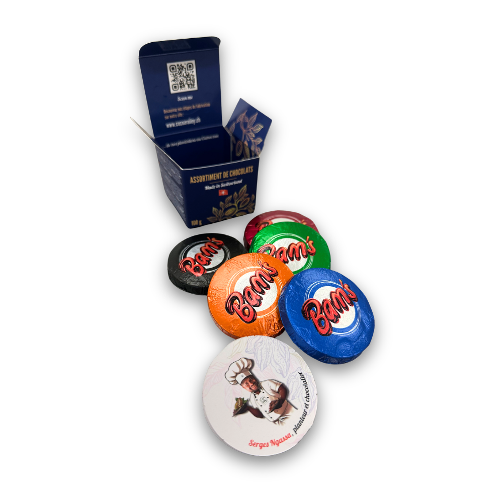 Behind this excellence lie exceptional origins: noble cocoa, sourced from our own plantations in Cameroon and transformed with Swiss expertise into a uniquely premium product. An intense sensory journey, from bean to palate.