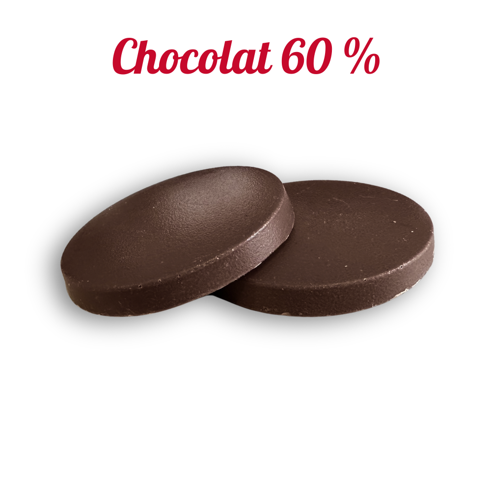 Dark Chocolate 60%: Cocoa mass*, cane sugar*, cocoa butter*, non-GMO sunflower lecithin*, fleur de sel*, vanilla powder*.
