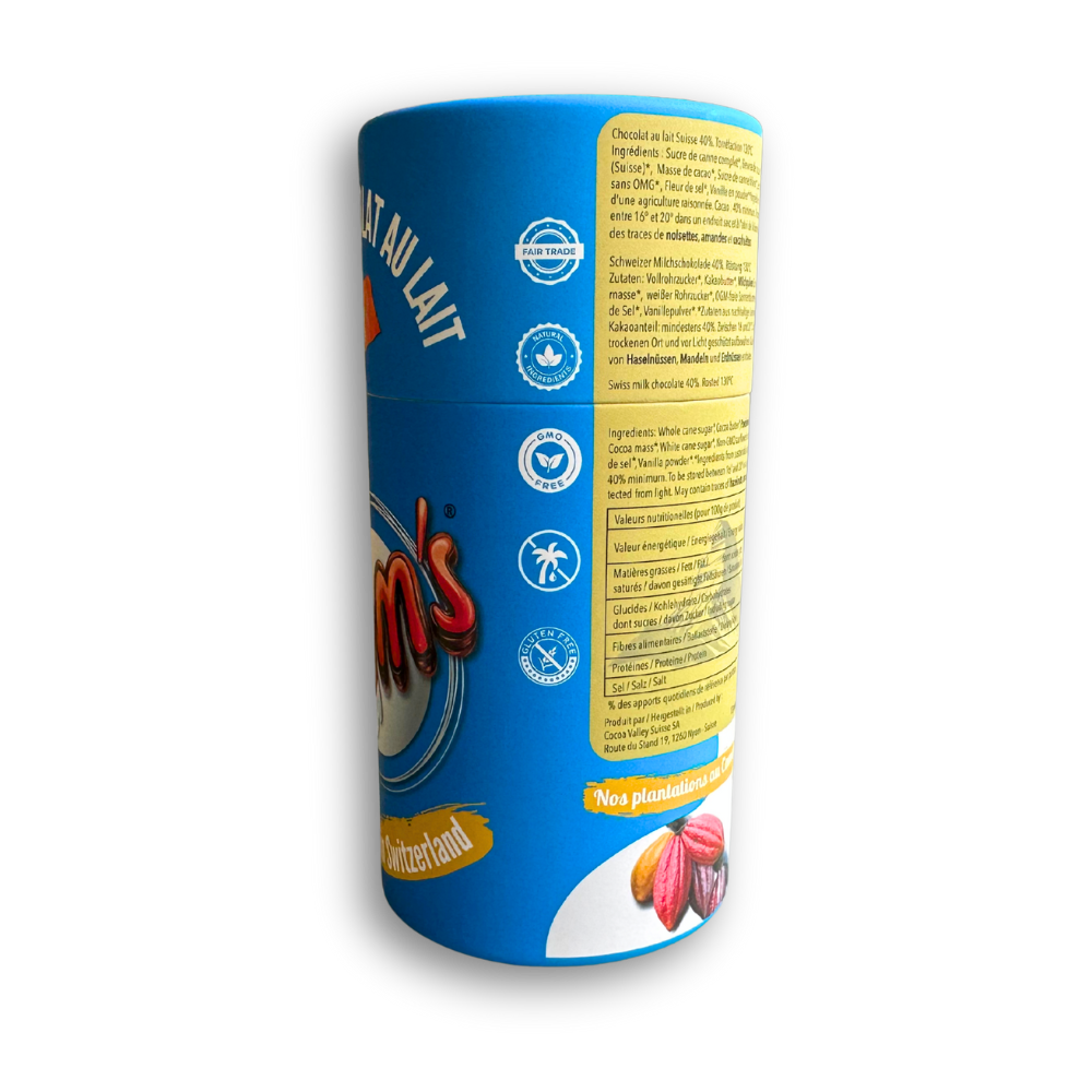 Indulge in the perfect blend of smoothness and refinement with our tube of 12 pieces of 40% Swiss milk chocolate. Each 20g piece is a promise of pure pleasure, carefully wrapped to preserve its freshness and signature crunch, while ensuring a perfectly hygienic tasting experience that’s perfect for sharing.
